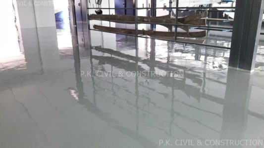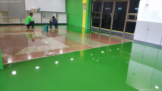 Epoxy Self-Leveling เป็นระบบเคลือบพื้นโดนใช้อีพ็อกซี่ชนิดเทปรับระดับ หรือปาดปรับระดับ เพื่อเคลือบพื้นให้แข็งแรงทนทานต่อการใช้งานมากกว่าระบบอีพ็อกซี่ชนิดทา ระบบนี้จะมีความหนาและความเงางามเป็นพิเศษ นิยมใช้ในส่วนพื้นโรงพยาบาล โรงงานผลิตยา โรงงานประกอบรถยนต์ โรงงานอิเล็คโทรนิค โชว์รูม ลานจอดรถยนต์